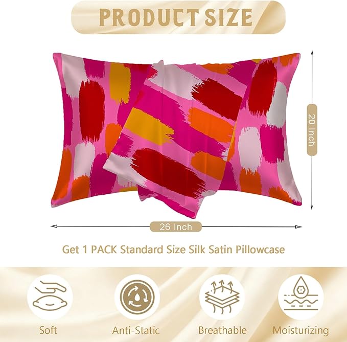 - Size: The abstract retro pink orange brush standard imitation silk pillowcase is 20x26 inches. We have a variety of colors for you to choose from. Beautiful, exquisite, and lovely silk pillowcases are suitable for all pillow materials, which can protect the pillow from dust and stains
