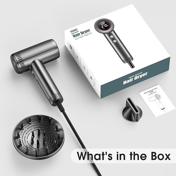 - 【Versatile Design】This hair dryers for women features 9 temp modes, including a cold and hot air circulation mode, and allows for one-touch switching to cool air. It offers 2 wind speed options and is equipped with a 3-color light indicator on the display: a blue light indicates cool air at 80~110°F, an orange light indicates warm air at 130~170°F, and a red light indicates hot air at 190~210°F—alternating red and blue lights indicate the hot/cold cycle mode.