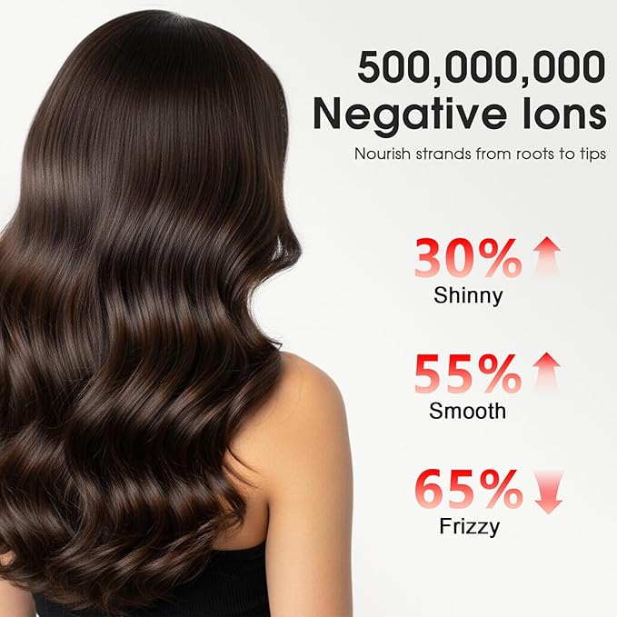 - 【Quick Drying & Negative Ion Hair Care】This High-speed hair dryer releases up to 200 million negative ions during the drying process, reducing frizz, and leaving hair smooth and shiny. Equipped with a 110,000 RPM motor and a wind speed of up to 23 m/s .Additionally, it features NTC intelligent temperature control technology, monitoring temperature at a frequency of 110/s, making real-time adjustments to precisely prevent heat damage and provide comprehensive protection for hair health