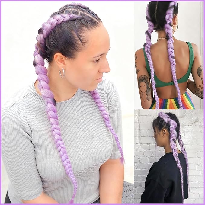 L. Purple Braiding Hair Pre Stretched 2 Packs Box Braids Hair Extensions 26 Inches Synthetic Pre Stretched Braiding Hair…