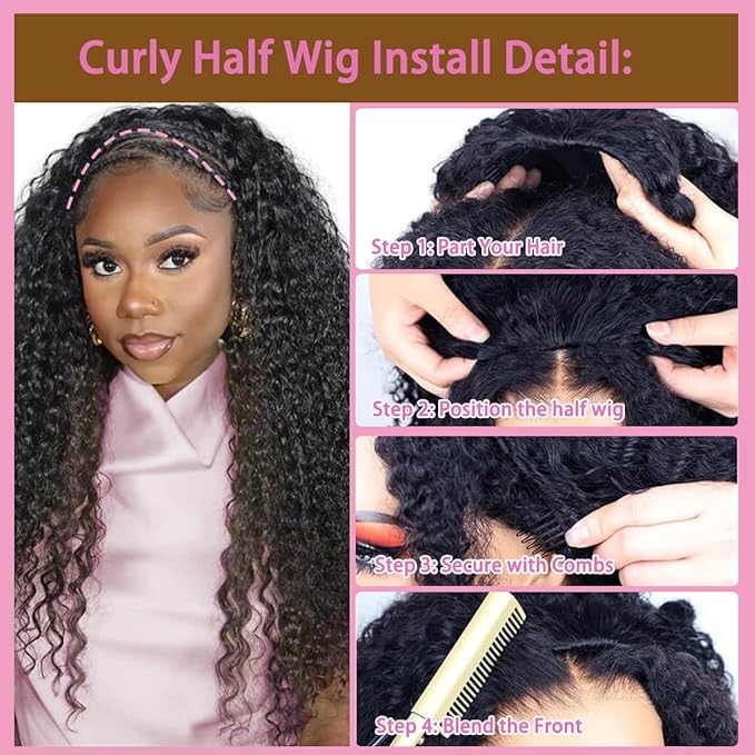 - 【Half Wig Human Hair Distinguished Advantages】 Newly Designed Deep Wave Half Wig Human Hair, Glueless and Non Lace Wig,a stylish and trendy human hair wig. Achieving stunning looks with perfectly qulick installation. Its breathable, sweat-resistant design suits all seasons—simply ready to wear and go. Installation and removal take just one minute—“TIME AND BEAUTY, I WANT BOTH!” The invisible hairline creates a more natural effect. Crucially, it's durable and long-lasting. Our curly half wig human hair making it an indispensable.