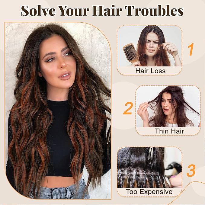 - ❤【Advantages of 4PCS Clip in Extensions】: Compared to traditional hair extensions,No tape,No glue,our hair extension only uses BB clips to fix.You can finish it in minutes.And no pressure,no damage to the scalp.This long hair wavy extension is safer and more comfortable.They can be cut,permed and washed.You don't need to rush to the Salon for a party,or be upset in an overslept morning; just spend 5 minutes wearing these hair
