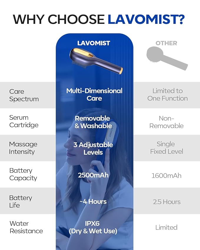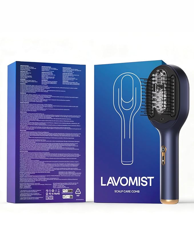 - 【3-Intensity Bionic Massager】With 46 rounded flexible massage nodes, LAVOMIST self-care comb provides deep relaxation that mimics real hand kneading; select your intensity (High/Medium/Low), enjoy a pleasant sensation.