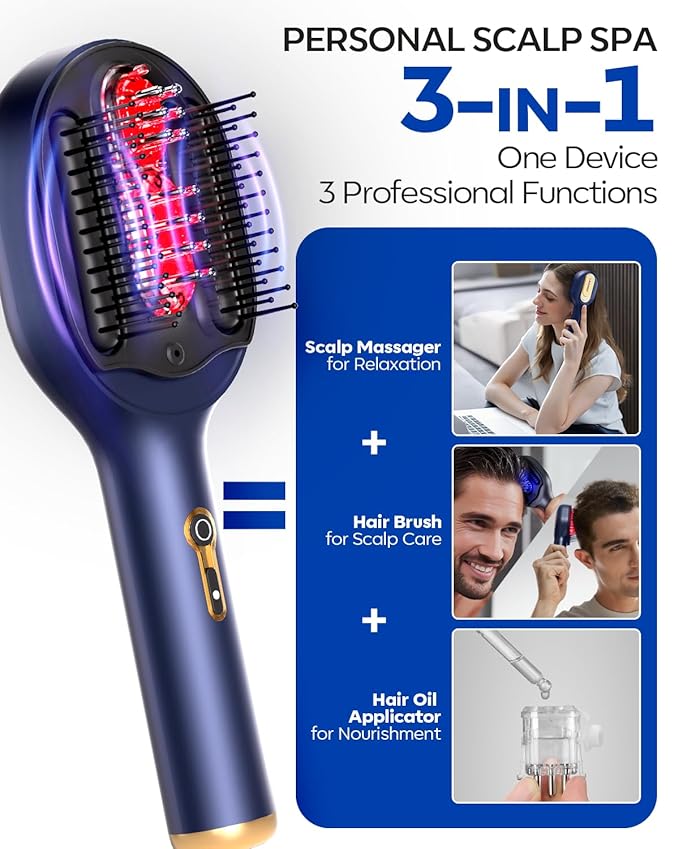 - 【3-IN-1 Professional Design】Enjoy a premium salon experience at home with our versatile massager brush; It combines scalp massager, hair brush, hair oil applicator- all unified into one device for consistent daily care.