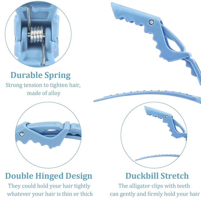 - Easy to Use: These alligator clips are very strong and easy to use. You could use them for sectioning off your hair when washing or styling and your hair will stays in place the whole time. The “claws” at the top really help secure your hair too