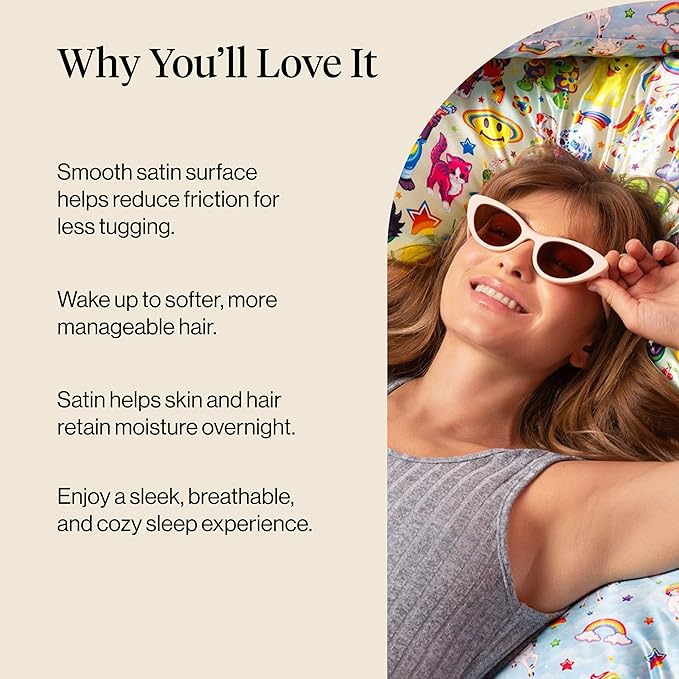 - LUXURY SATIN PILLOWCASE FOR HAIR & SKIN – Wake up to smoother hair and glowing skin with our bestselling satin pillowcase. Designed to reduce frizz, tangles, and breakage by creating less friction than cotton pillow cases, while helping prevent sleep lines and facial creases.