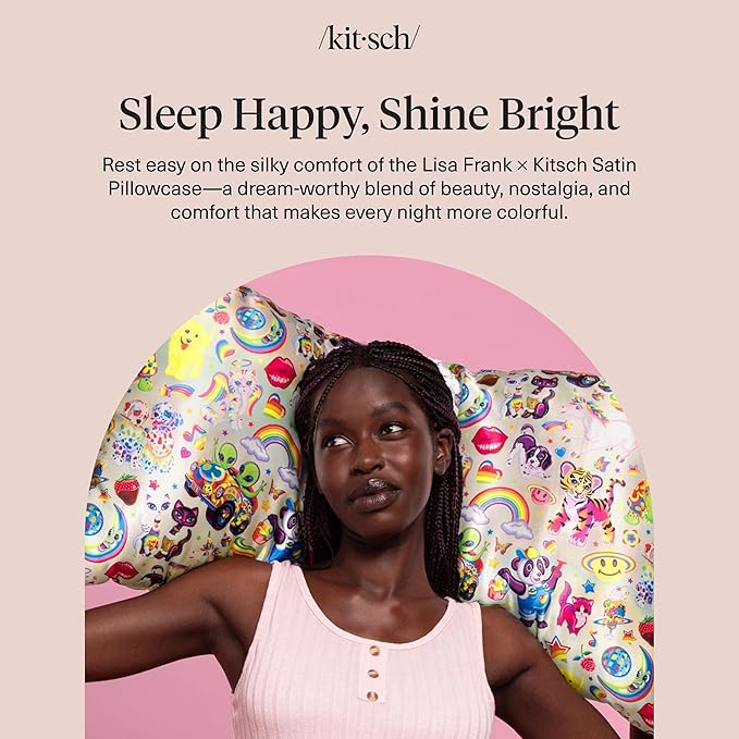 Kitsch x Lisa Frank Satin Pillowcase with Zipper for Hair & Skin, Softer Than Silk Pillow Cases, Wrinkle-Free, Smooth and Cooling Satin Pillow Covers King Size 19x36- The Fantastic World of Lisa Frank