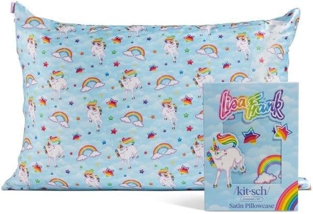 Kitsch x Lisa Frank Satin Pillowcase with Zipper for Hair & Skin, Softer Than Silk Pillow Cases Queen, Wrinkle-Free, Smooth and Cooling Satin Pillow Covers Standard/Queen Size 19x26 - MarkieTM