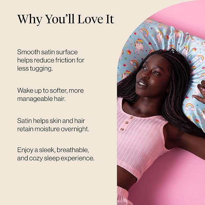 - LUXURY SATIN PILLOWCASE FOR HAIR & SKIN – Wake up to smoother hair and glowing skin with our bestselling satin pillowcase. Designed to reduce frizz, tangles, and breakage by creating less friction than cotton pillow cases, while helping prevent sleep lines and facial creases.