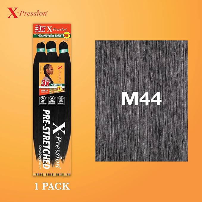 Sensationnel X-pression prestretched braiding hair - 3x braid 58 inch all kanekalon flame retardant synthetic braid for box braids and twists (1 pack, M44)