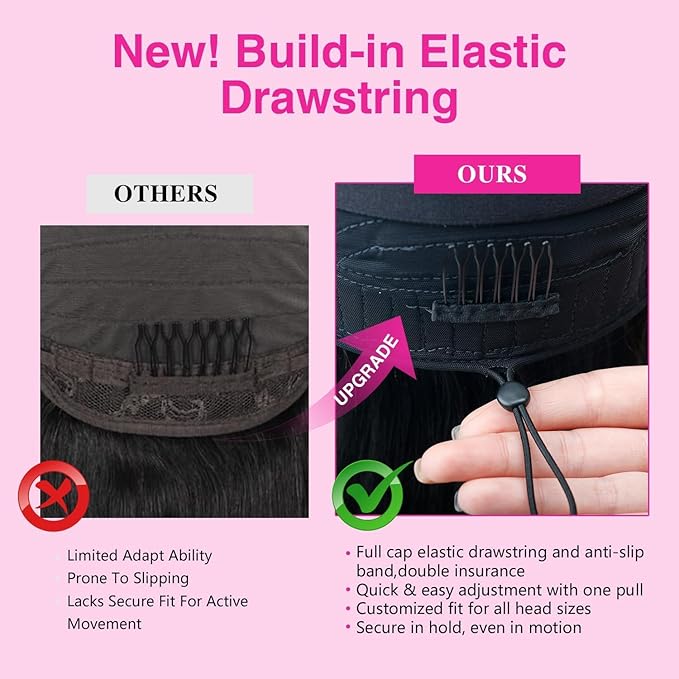 - Larhali New Design-Upgrade U Part Wig: Drawstring and anti-slip elastic strap help you fix the V part human hair wig tightly. The cap size can be adjusted though releasing the drawstring.
