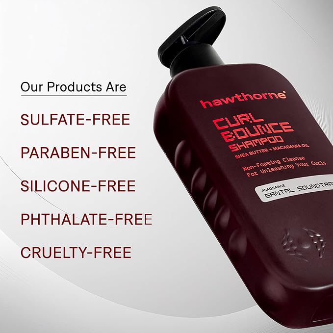 Hawthorne Curl Bounce Shampoo. Mens Curly Hair Shampoo with Shea Butter, Macadamia Oil, and Coconut Oil to Hydrate Curls and Tame Frizz. Sulfate & Paraben Free, Mens Natural Shampoo. 16 fl oz. 2-Pack.