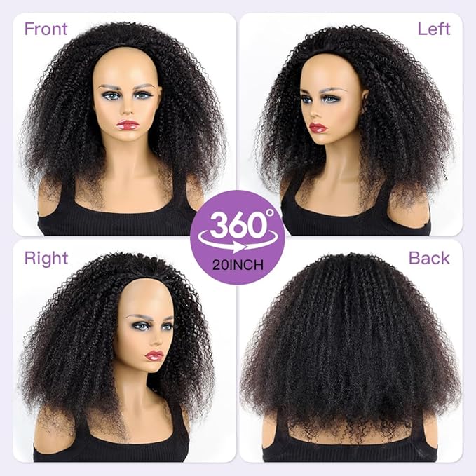 - Multi functional styling: The ALIGRACE kinky curly half wig Provide multiple wearing styles-semi braided, fast braided, high ponytail, headband, half top and half bottom, high bun, and more - with endless possibilities! Allow for easy and quick conversion in any situation.