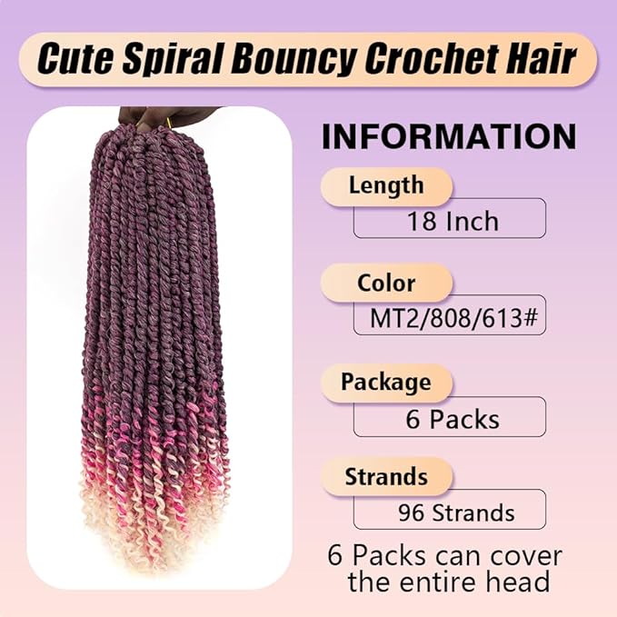 18inch Passion Twist Crochet Hair 96 Stands Pre-Twisted Passion Twist Hair 6 Packs Pre-Looped Passion Twists Braids Synthetic Passion Twist 0mbre Pink&Blonde Crochet Braids Hair Extensions