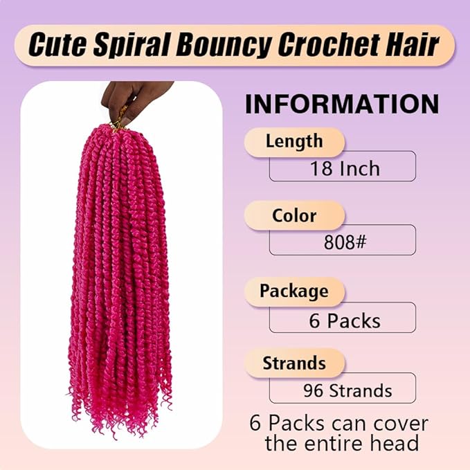 18inch Passion Twist Crochet Hair 96 Stands Pre-Twisted Passion Twist Hair 6 Packs Pre-Looped Passion Twists Braids Synthetic Passion Twist Pink Crochet Braids Hair Extensions (808#, 18 inch)